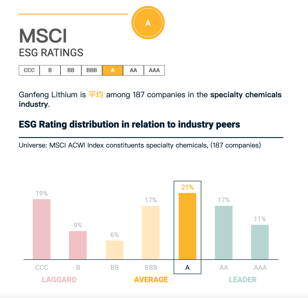 ▲贛鋒鋰業(yè)MSCI ESG評(píng)級(jí)A級(jí),位居全球同業(yè)平均水平