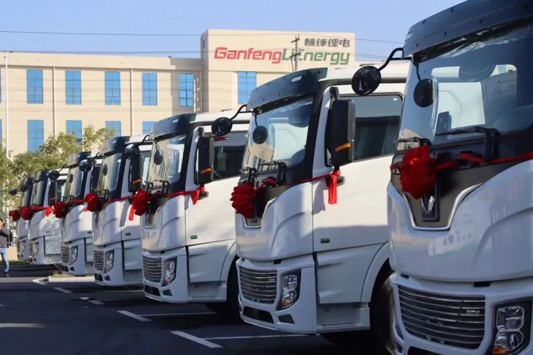 ▲首批搭載贛鋒鋰電方形磷酸鐵鋰電池的電動(dòng)重卡牽引車(chē)